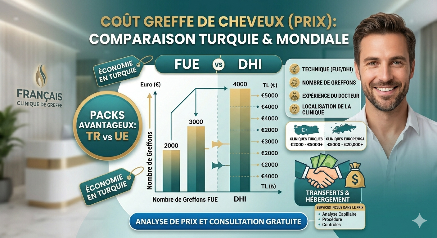 Découvrez la greffe capillaire à Istanbul en 2026 : prix, techniques FUE et DHI, résultats avant/après et forfait tout compris pour patients francophones.